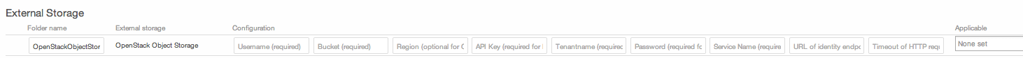 Step 2: We need to go to Admin page of the ownCloud installation and locate "External Storage" configuration area. We'll select "OpenStack Swift" from the drop down menu.